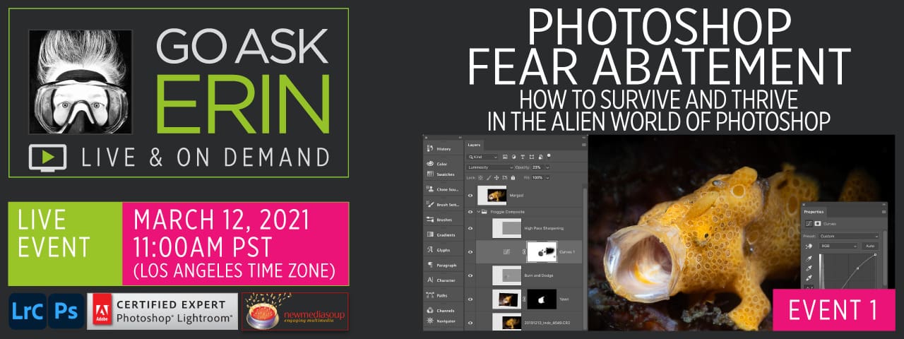 Photoshop Fear Abatement – How to Survive and Thrive in the Alien World of Photoshop – March 12, 2021 – 11:00AM PST (Los Angeles)